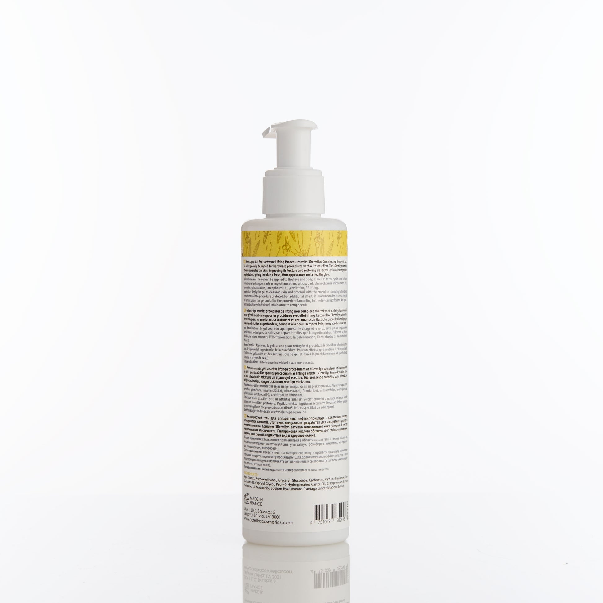 Professional anti-aging gel designed specifically for hardware lifting treatments. Enriched with the innovative 3Dermilyn Complex and hyaluronic acid, it actively rejuvenates the skin, improves elasticity, restores firmness, and enhances skin radiance, giving the face a fresh, lifted, and healthy glow.